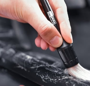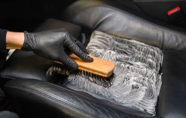 Un cuir mal entretenu peut se craqueler et devenir brillant quand il est salee altérant ainsi le confort et l’esthétique du véhicule. J'applique des produits hydratants et protecteurs a l'aide d'une brosse souple pour nourrir le cuir en profondeur et préserver son aspect naturel mate.